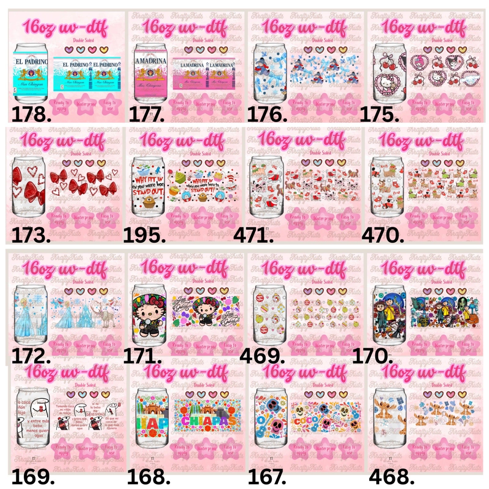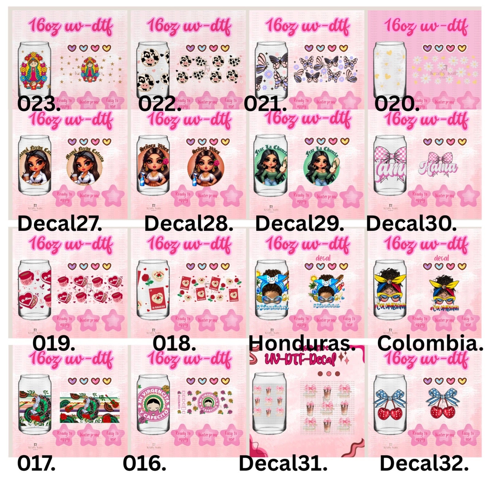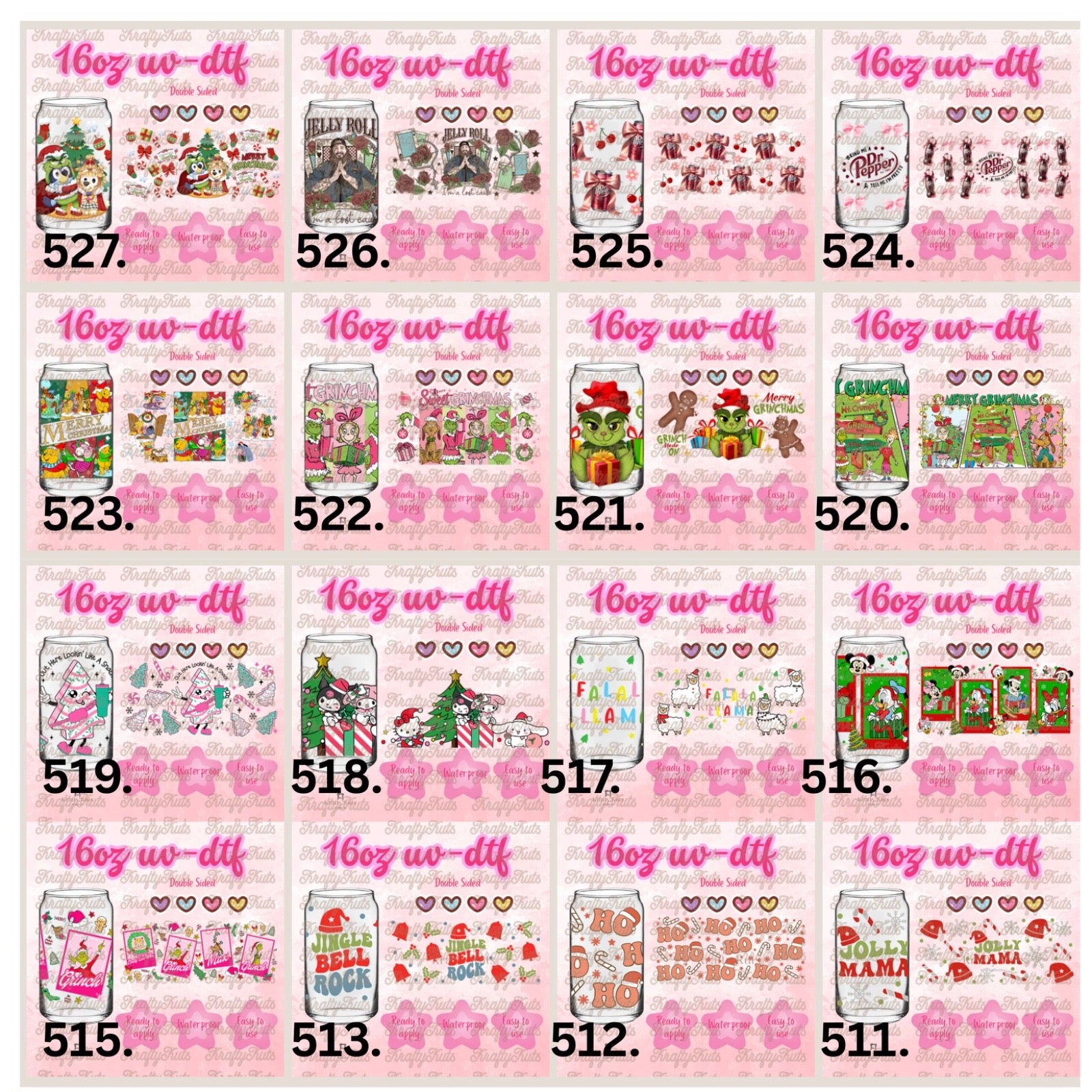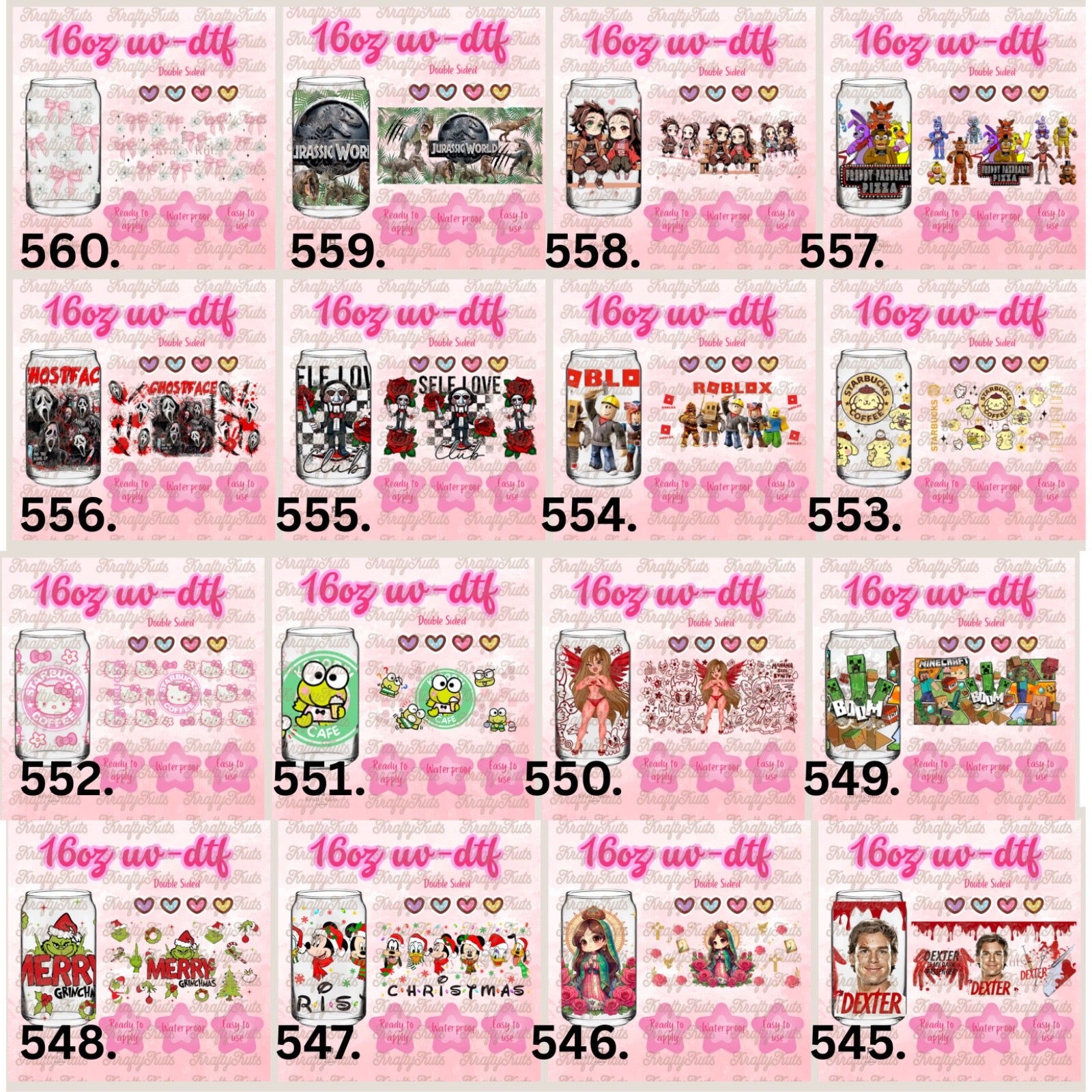 UV-DTF wraps to apply on cups 16oz or any hard surface.