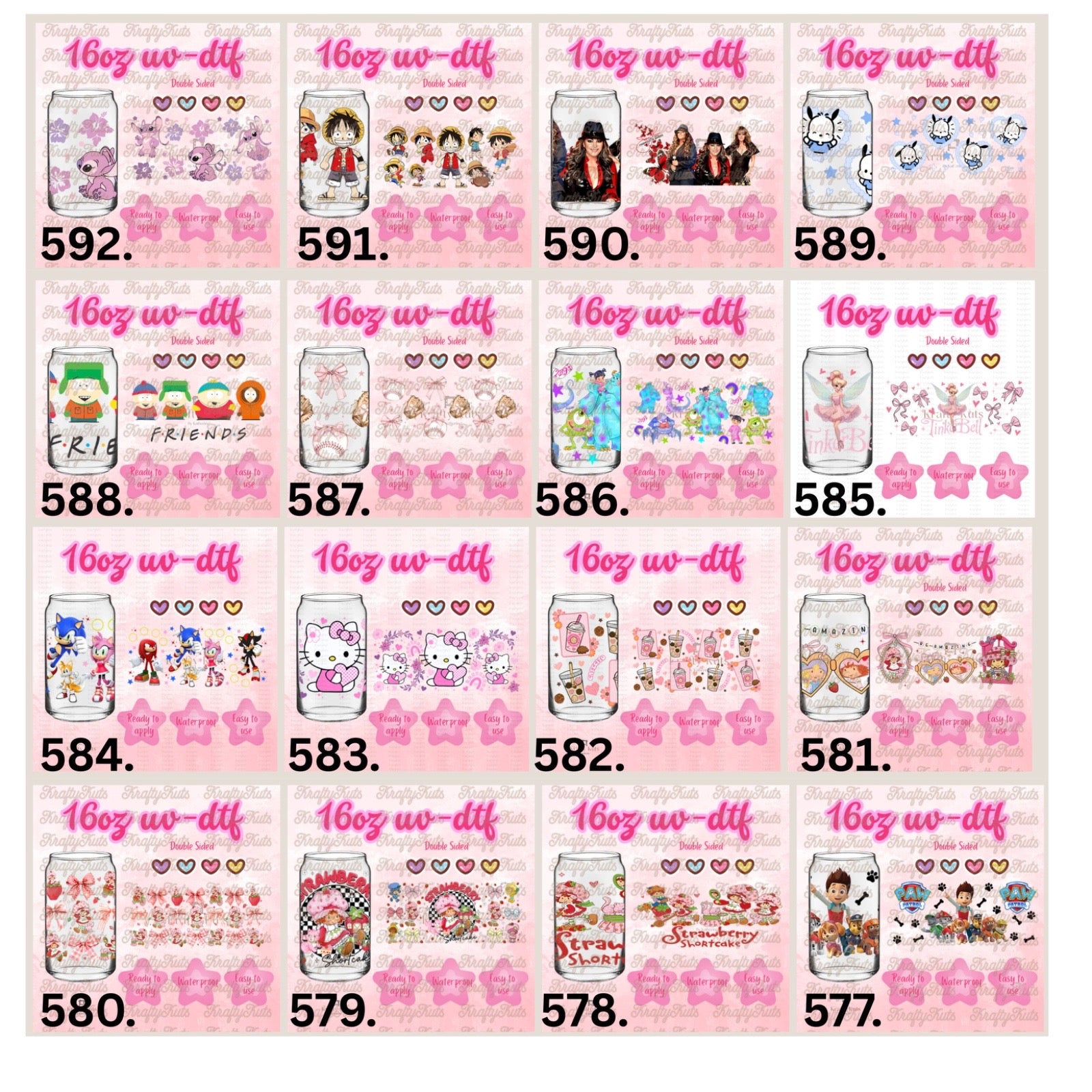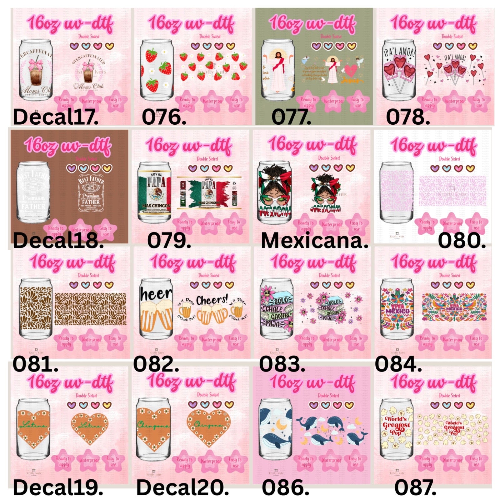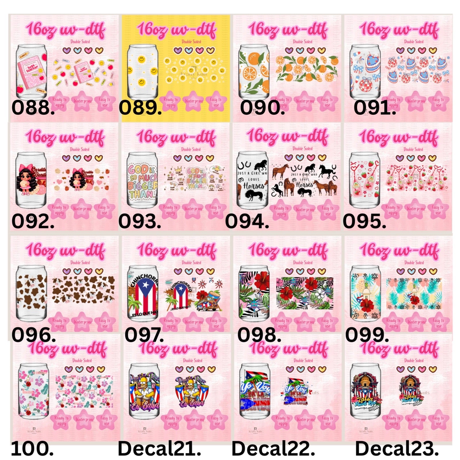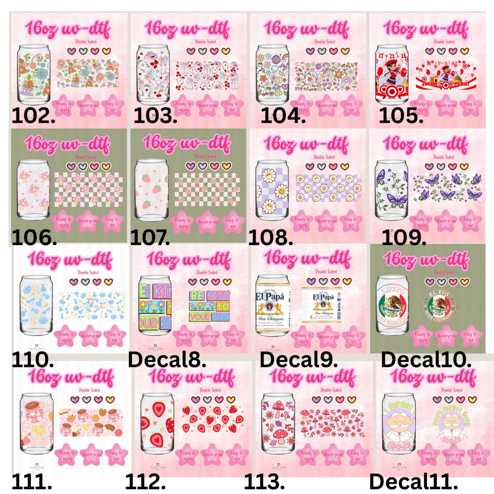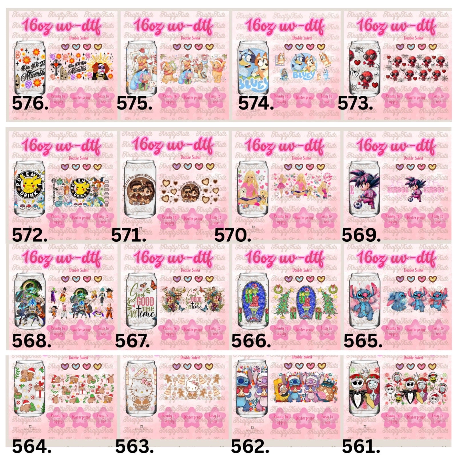 UV-DTF wraps to apply on cups 16oz or any hard surface.