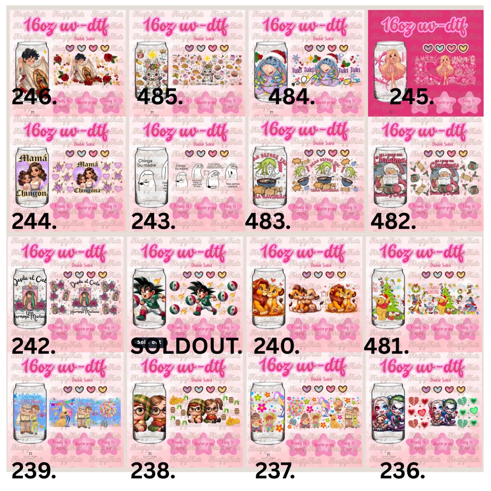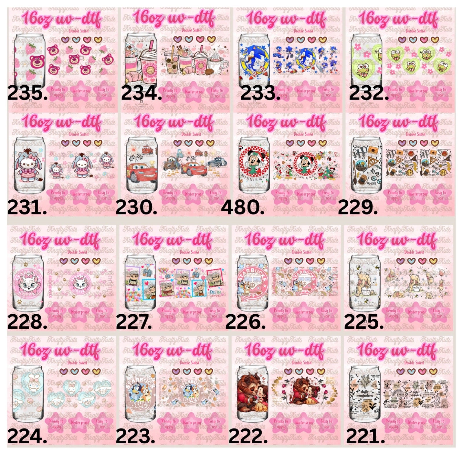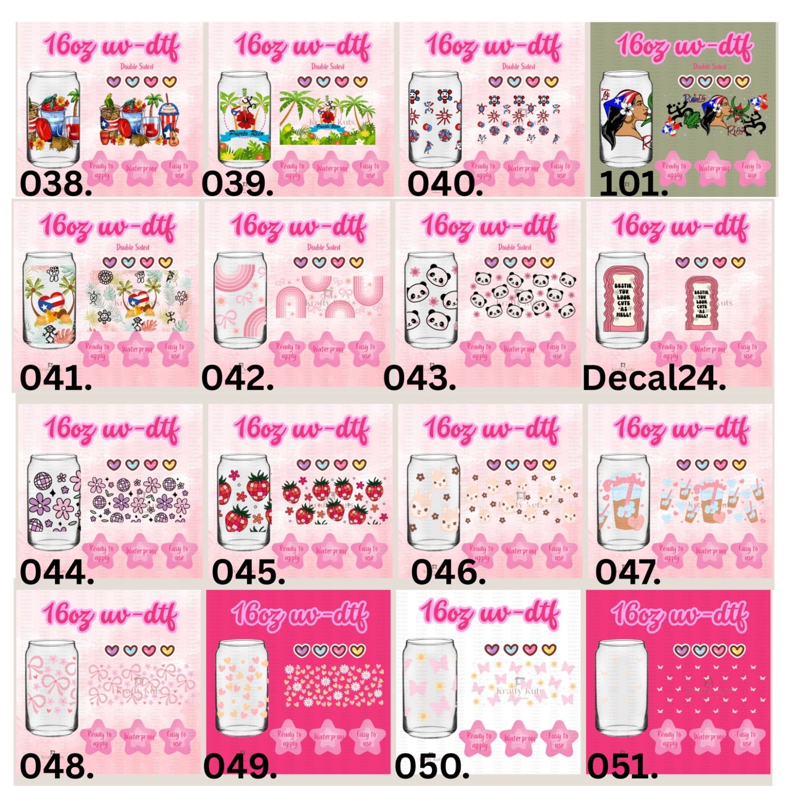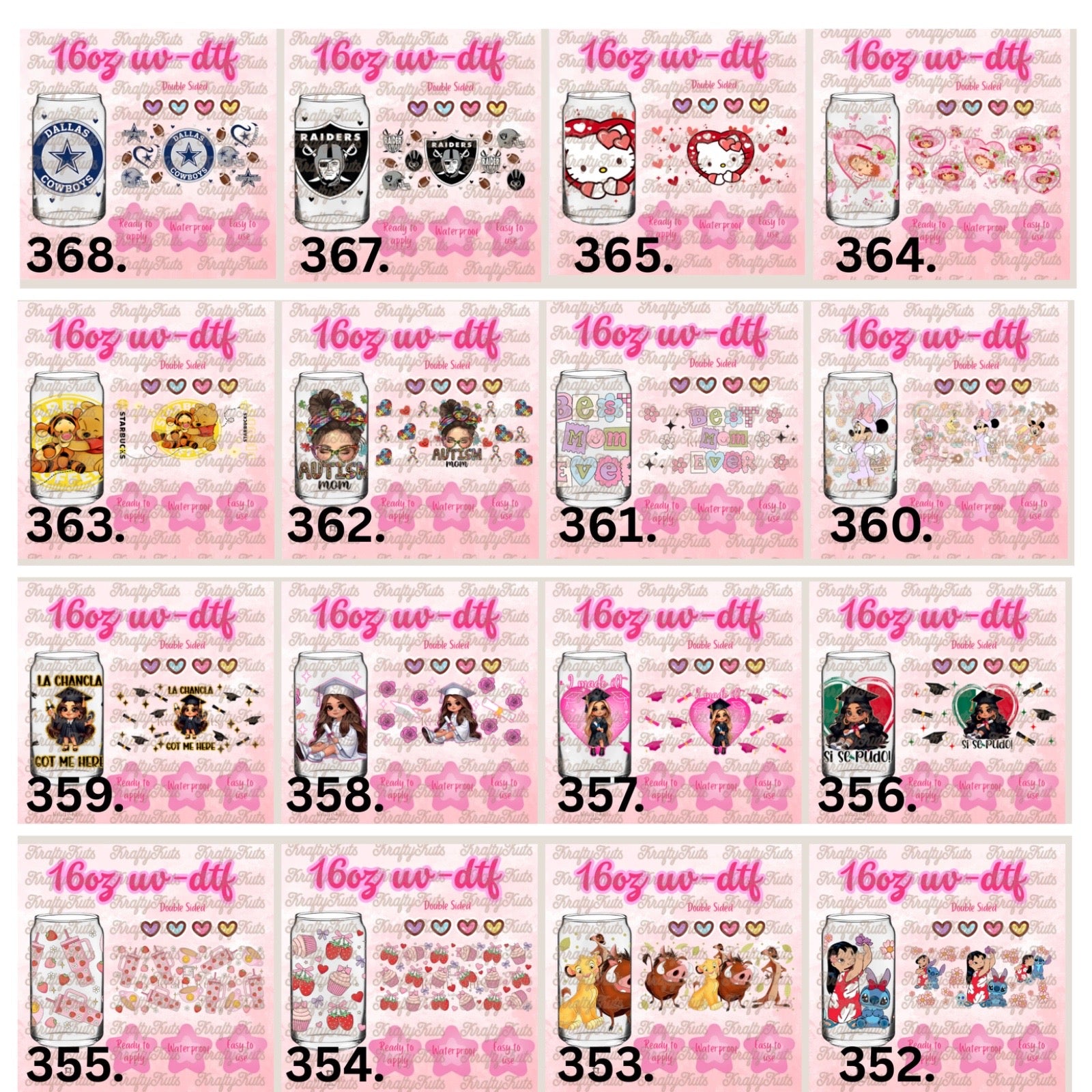 UV-DTF wraps to apply on cups 16oz or any hard surface.